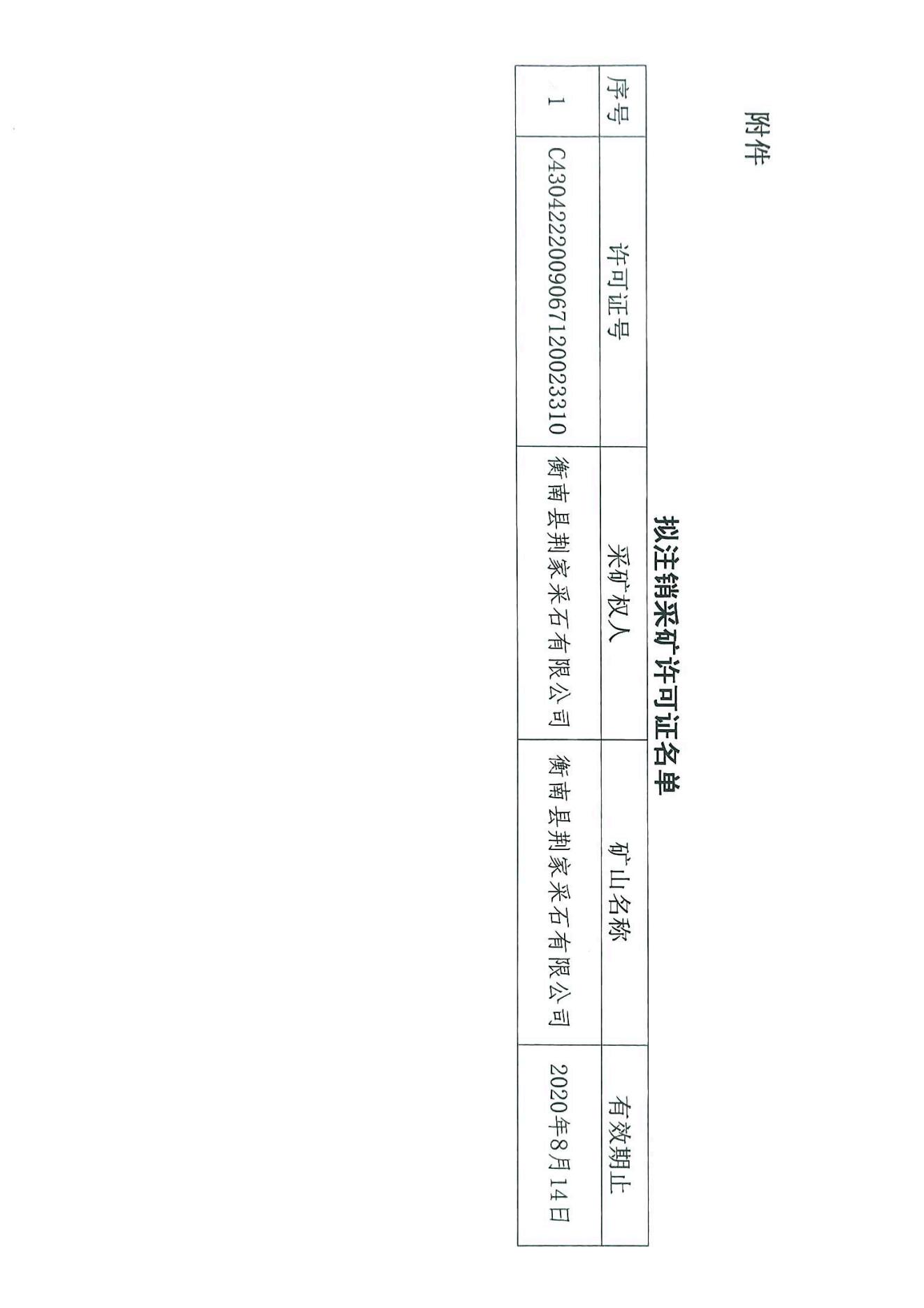 關(guān)于擬注銷(xiāo)過(guò)期采礦許可證的公示(衡南縣荊家采石有限公司)