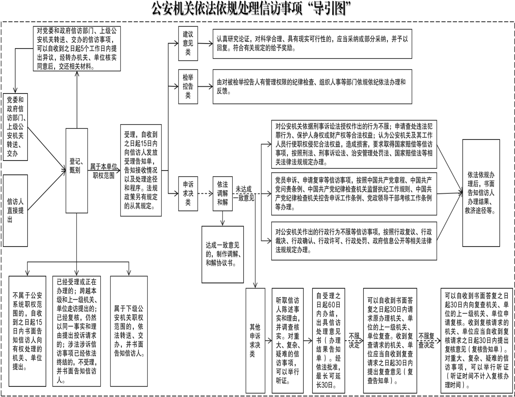 四、公安機關(guān)依法依規(guī)處理處理信訪事項“導(dǎo)引圖”及說明