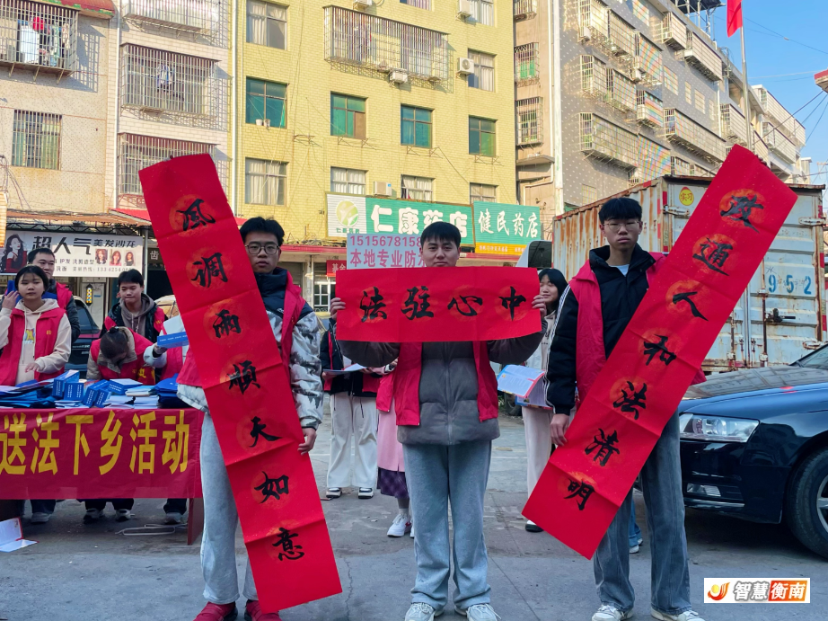 近日,衡南縣司法局花橋司法所聯(lián)合花橋鎮(zhèn)團委、鎮(zhèn)綜治辦組織本鎮(zhèn)返鄉(xiāng)大學生志愿者開展寒假"送法下鄉(xiāng)"活動,為轄內人民群眾送上豐富多彩的"法治年貨"。