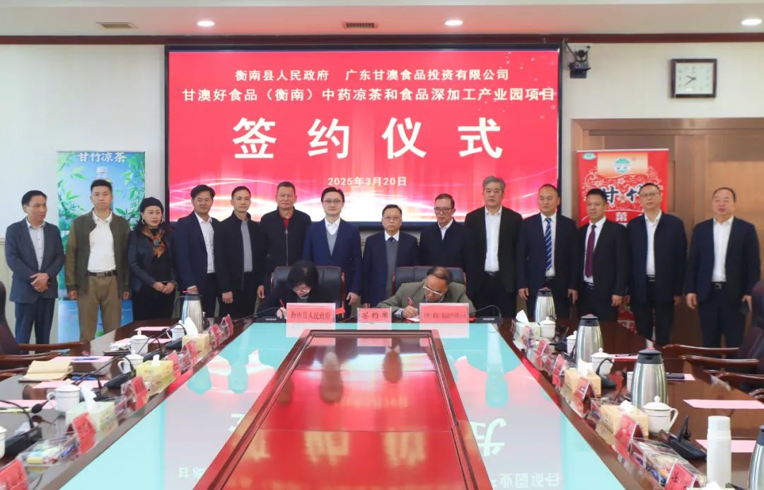 儀式上,衡南縣人民政府與甘澳(湖南)食品飲料有限公司簽署了項(xiàng)目合作協(xié)議。