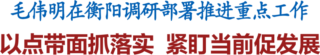 5月20日,省委副書記、省長毛偉明來到衡陽市,考察調(diào)研生態(tài)保護修復(fù)、防汛和安全生產(chǎn),以及"兩新""兩重"、"五經(jīng)普"等工作,研究推進當(dāng)前各項重點工作。他強調(diào),要學(xué)深悟透習(xí)近平總書記考察湖南重要講話和指示精神,緊盯當(dāng)前狠抓重點工作落實,一步不落地把各項工作抓到位,確保"時間過半、任務(wù)過半"。