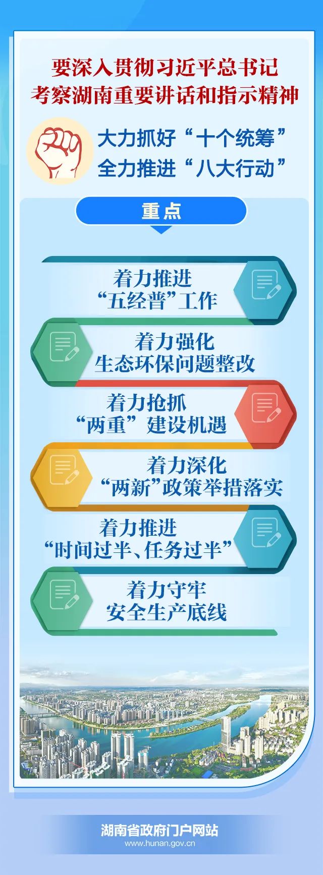 要深入貫徹習(xí)近平總書記考察湖南重要講話和指示精神,大力抓好"十個統(tǒng)籌",全力推進"八大行動",重點——